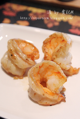 三文魚首先上碟,是我媽媽點的套餐A,魚皮煎得香脆,魚肉亦甚為嫩滑。我的套餐B先上蝦,共有三隻,蝦的件頭都頗大,肉質爽口。